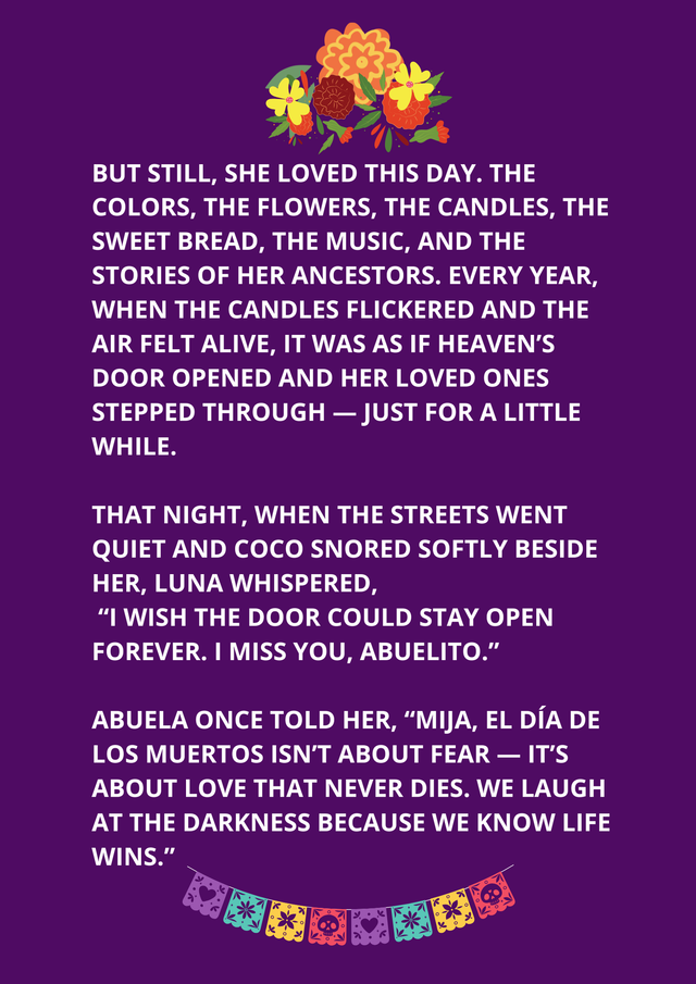 And as she drifted to sleep, she dreamed of her Abuelito laughing on the other side of the door — the Door of Life."